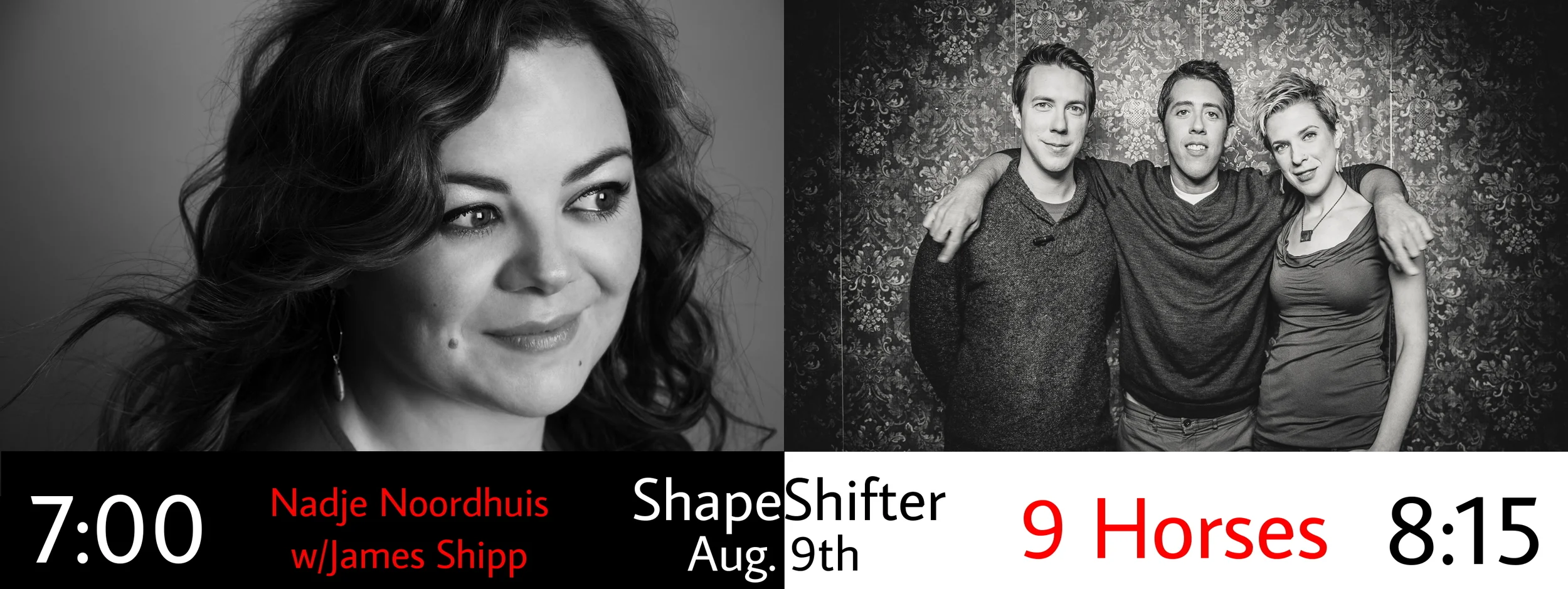 9 Horses/Nadje Noordhuis at Shapeshifter Lab Tuesday, August 9, 2016 7:00 PM 10:00 PM 19:00 22:00 Shapeshifter Lab 18 Whitwell Place Brooklyn, NY, 11215 United States (map) Google Calendar ICS